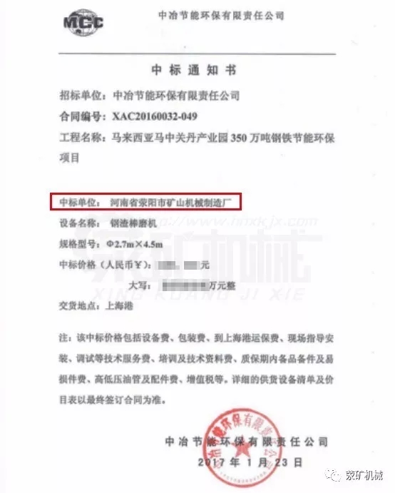 2017年1月,我廠參與中冶節(jié)能環(huán)保有限責(zé)任公司2745棒磨機(jī)招投標(biāo)項(xiàng)目,將用于馬來(lái)西亞馬中關(guān)丹產(chǎn)業(yè)園350萬(wàn)噸鋼鐵節(jié)能環(huán)保項(xiàng)目。我廠憑借多年來(lái)在海內(nèi)外優(yōu)異的銷(xiāo)售業(yè)績(jī)、核心技術(shù)和售后服務(wù),最終贏得此招投標(biāo)項(xiàng)目。