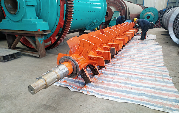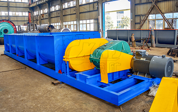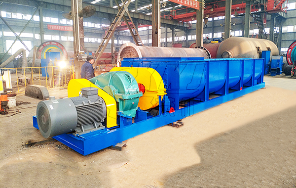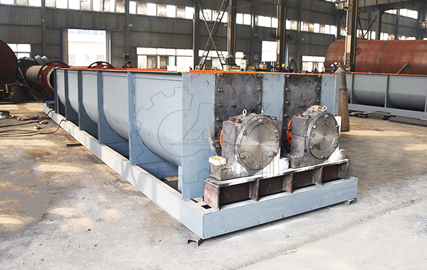 該機(jī)采用內(nèi)外反向螺帶螺旋攪拌器;