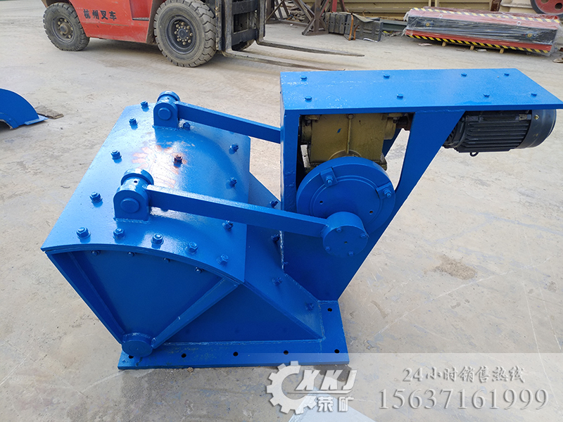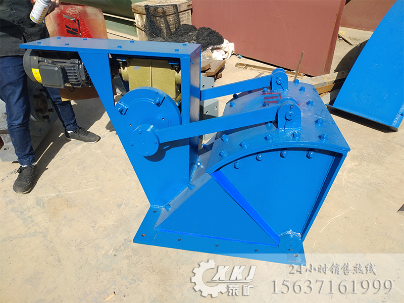 電動(dòng)機(jī)通過(guò)三角帶減速器減速。經(jīng)減速的動(dòng)力傳遞到可調(diào)偏心距的偏心輪。再由偏心輪通過(guò)連桿,驅(qū)使擺動(dòng)底板作往擺動(dòng),位于給料機(jī)上方礦倉(cāng)的礦石,經(jīng)過(guò)給料機(jī)機(jī)體內(nèi)腔,由排料口,一次次勻速的排出機(jī)外,確保給球磨機(jī)均勻地喂料。